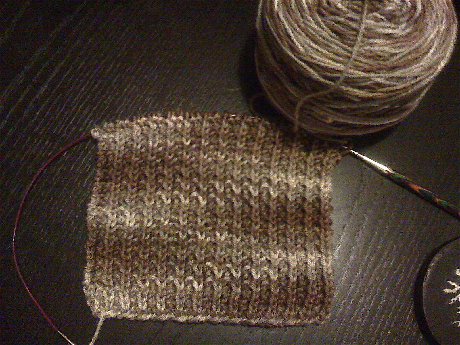 Okay, now that I’ve grossed you out, on to breakfast cereals: When I was little, we used to always have a box of Kellogg’s Shredded Wheat on hand. I liked the frosted kind but you had to eat it quickly before the milk disintegrated all of the frosting. Otherwise, you were left with soggy, wheaty, mush. I started a new scarf the other night and the yarn color is reminding me of frosted shredded wheat cereal:
