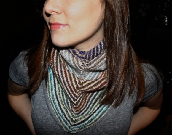 I’m pretty pleased with how it came out. This was my first time working with Noro and I guess my experience was the same as a lot of knitters: its not exactly soft, that Noro… but it sure stripes beautifully. Its so exciting to keep going a couple of more rows until the next color pops up. This was such a great pattern for using Noro. I think there might even be just enough yarn in each ball to knit another one.