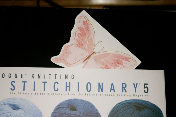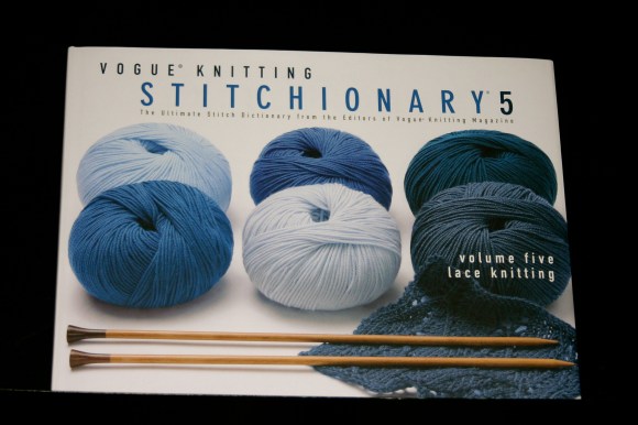 Recently, Leslie of A Friend to Knit With hosted a blog contest.  The prize was a copy of Vogue Knitting Stitchionary Volume 5 Lace Knitting.  I have the first two volumes of this beautiful and detailed series, so I left a comment, knowing I wouldn’t win.  I couldn’t believe my  luck when I checked my daily blogroll and saw on Leslie’s blog that I had won!  If you haven’t checked out Leslie’s blog, please do so.  It is full of beautiful photography showcasing crafty knits, delicious-looking foods, and its a great read.