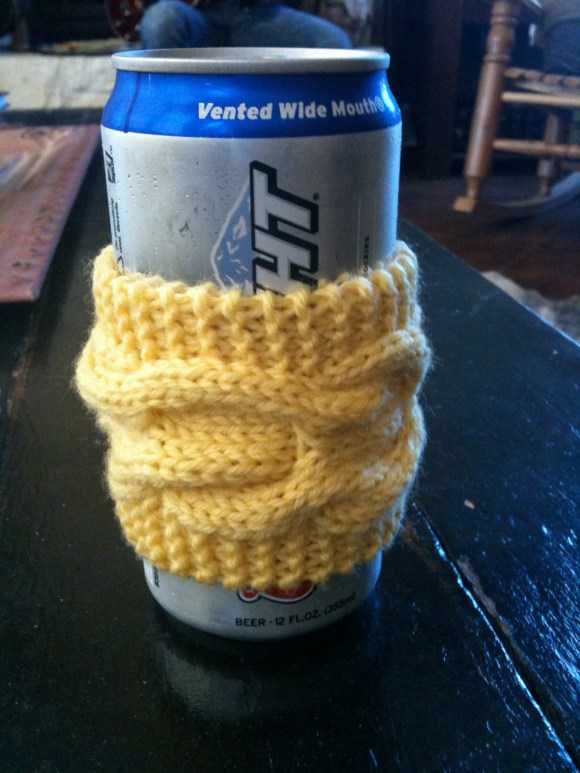 Finished coffee insulator modeled by the always classy Coors Light can