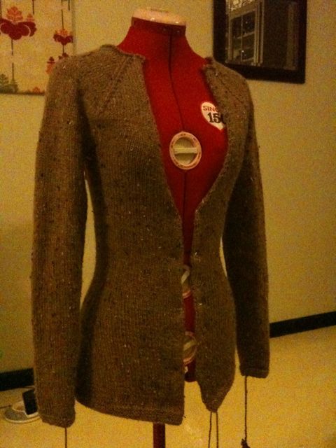 Now we’ll see if my circular needles are long enough to pick up stitches all around for the button band/neckline.
