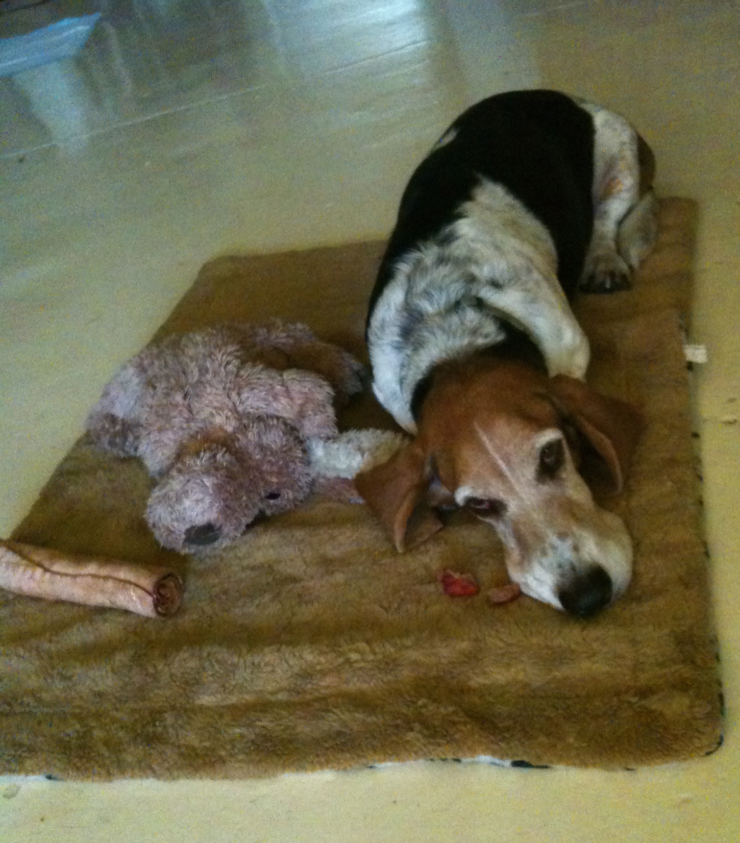 Back to the knitting….  I’ve also started a Wurstwarmer for Henry.  I’m having to size this one up since Henry isn’t a tiny dachshund, but I think this one will come out pretty cute.  I’m using a heathered charcoal color of Peace Fleece.  I think it will be classy and sophisticated.  Cause we all know Henry is one sophisticated hound.