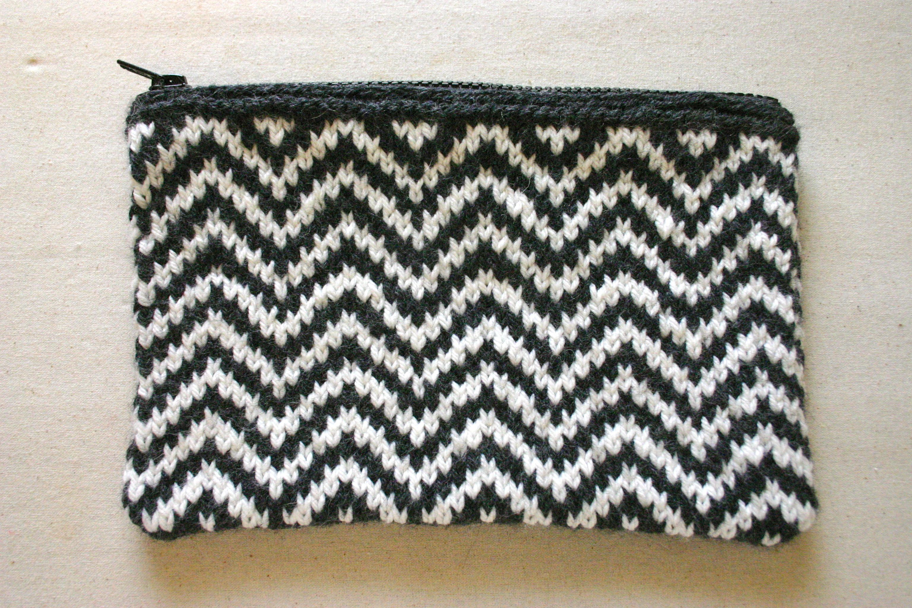 I’ve been working on a design for a little zig zag bag since before Christmas and I’ve been putting off the finishing- sewing in a zipper and a fabric lining. I have to admit I have always been a little intimidated by finishing things. You spend so much time knitting something and if you do a shoddy job at finishing, it can ruin the whole thing. (See here for the story of the Five Year Sweater that literally sat around unfinished for years because I was too afraid to sew in the sleeves.)