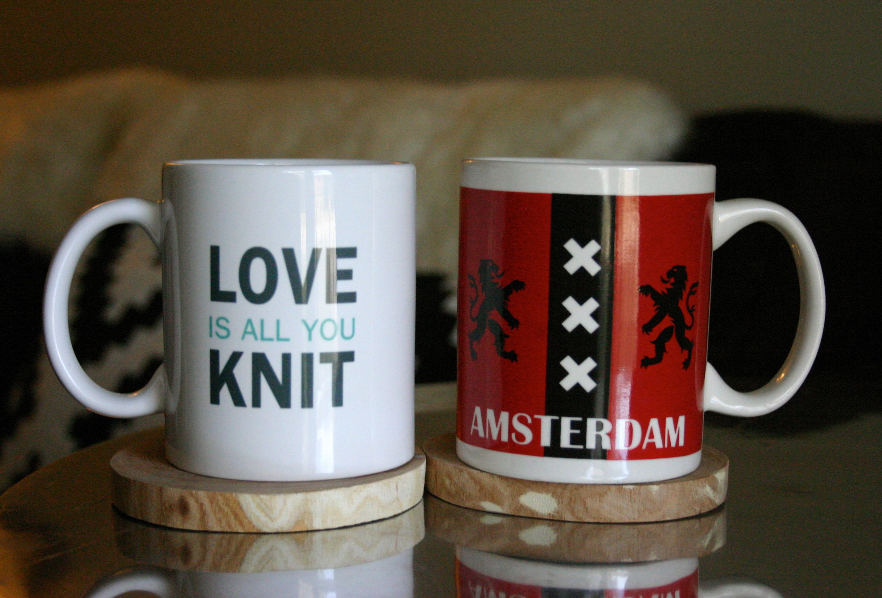 When he pours the coffee, he tends to make mine in the Love Is All You Knit mug and his in either the Amsterdam mug or maybe the Don’t Mess With Texas. Sometimes he’ll bring me coffee in the little mug from Holland with the Dutch girl and boy leaning in for a kiss. And when he is on tour, I tend to drink from a mug that is geographically close to wherever he is traveling. Yes, there has been an “oh he’s in Spain, so I’m drinking from Barcelona today,” and I’ve even drank from his J- initial cup to feel extra close while he was away.