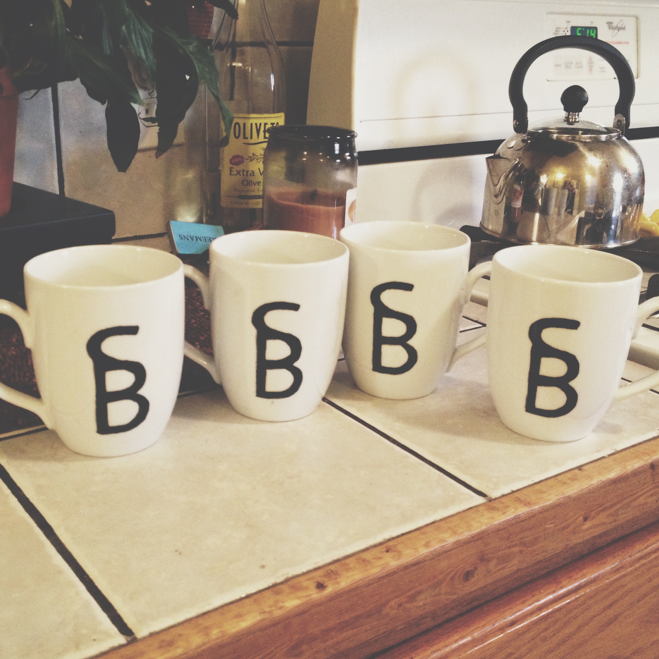 I only have one small handcrafted Christmas gift to show, but I was really pleased with the way it came out. I made my parents a set of coffee mugs emblazoned with their Sandybrook Ranch cattle brand. I created the brand in Illustrator and then printed it out and traced it onto the mugs using graphite paper and then filled in the design with black porcelain pen. I baked them in a 350 degree oven for 40 minutes to set the ink and that was it!