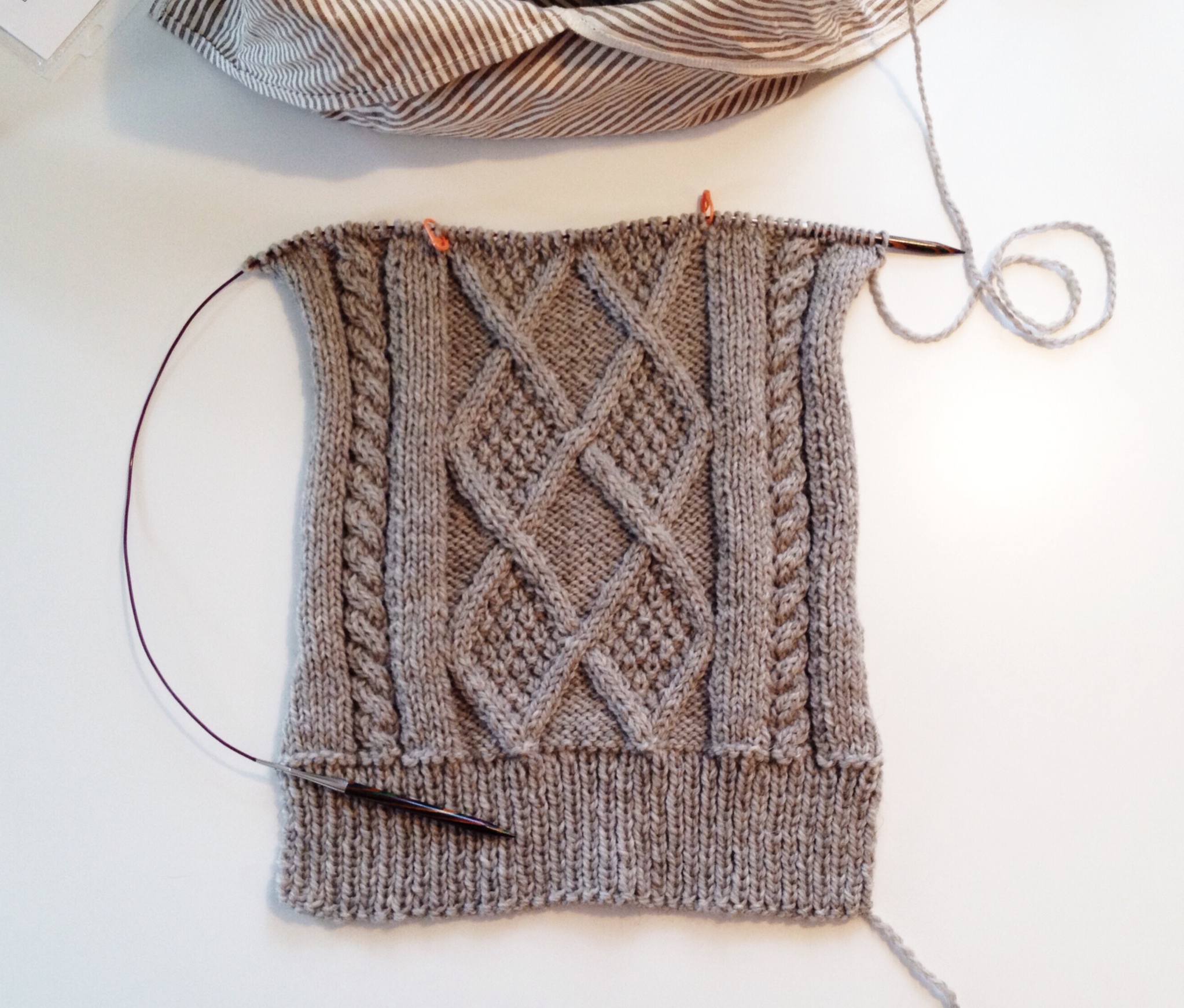 I think as soon as I get tired of working these particular cables on the back piece, it will be time to start the fronts and sleeves, which are comprised of entirely new cable patterns. Score another one for Team Seam because if I was working this as one seamless piece, I would probably be getting tired of all of the cables about now and still have a LOT of sweater left to knit.