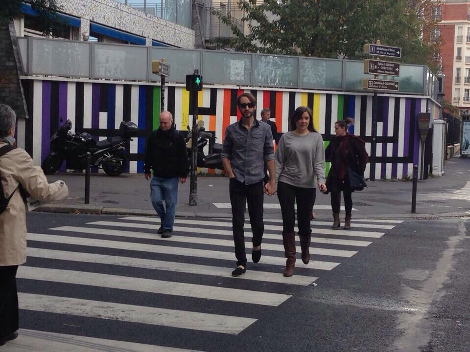 We traveled overnight from Amsterdam to Paris on the tour bus. I awoke in my bunk to a sliver of light coming in through the curtain and the sound of cars driving and honking. I peeked out the window and was eye level with a piece by the street artist, Space Invader on the side of a building. It momentarily brought me back to Brooklyn, where I would walk past another of his pieces on an almost daily basis. I woke Joey and we decided to stretch our legs and find out where the showers were.