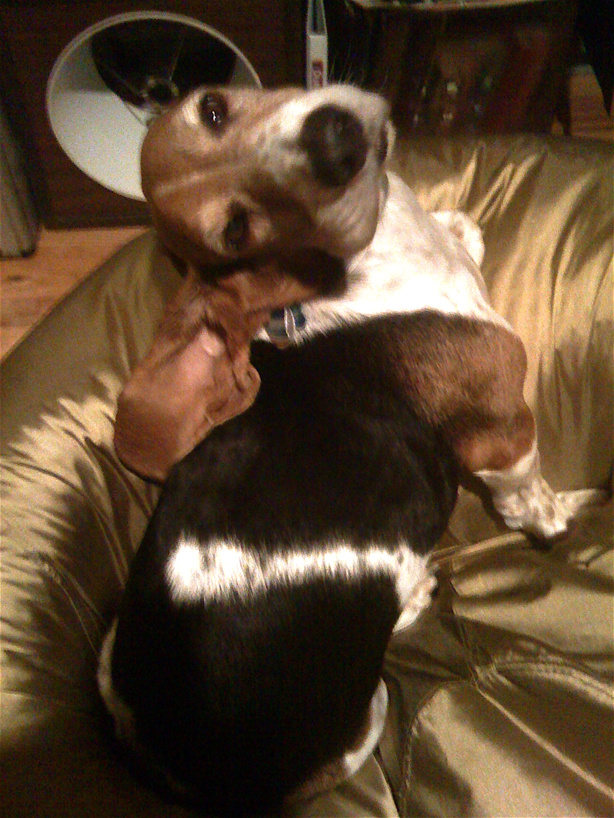 I really haven’t made progress in my knitting over the past few weeks, mainly cause this guy likes to sit right on my lap and bonk my knitting out of the way with his rather large nose. Then we proceed to snuggle. He always wins.