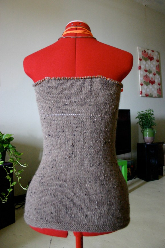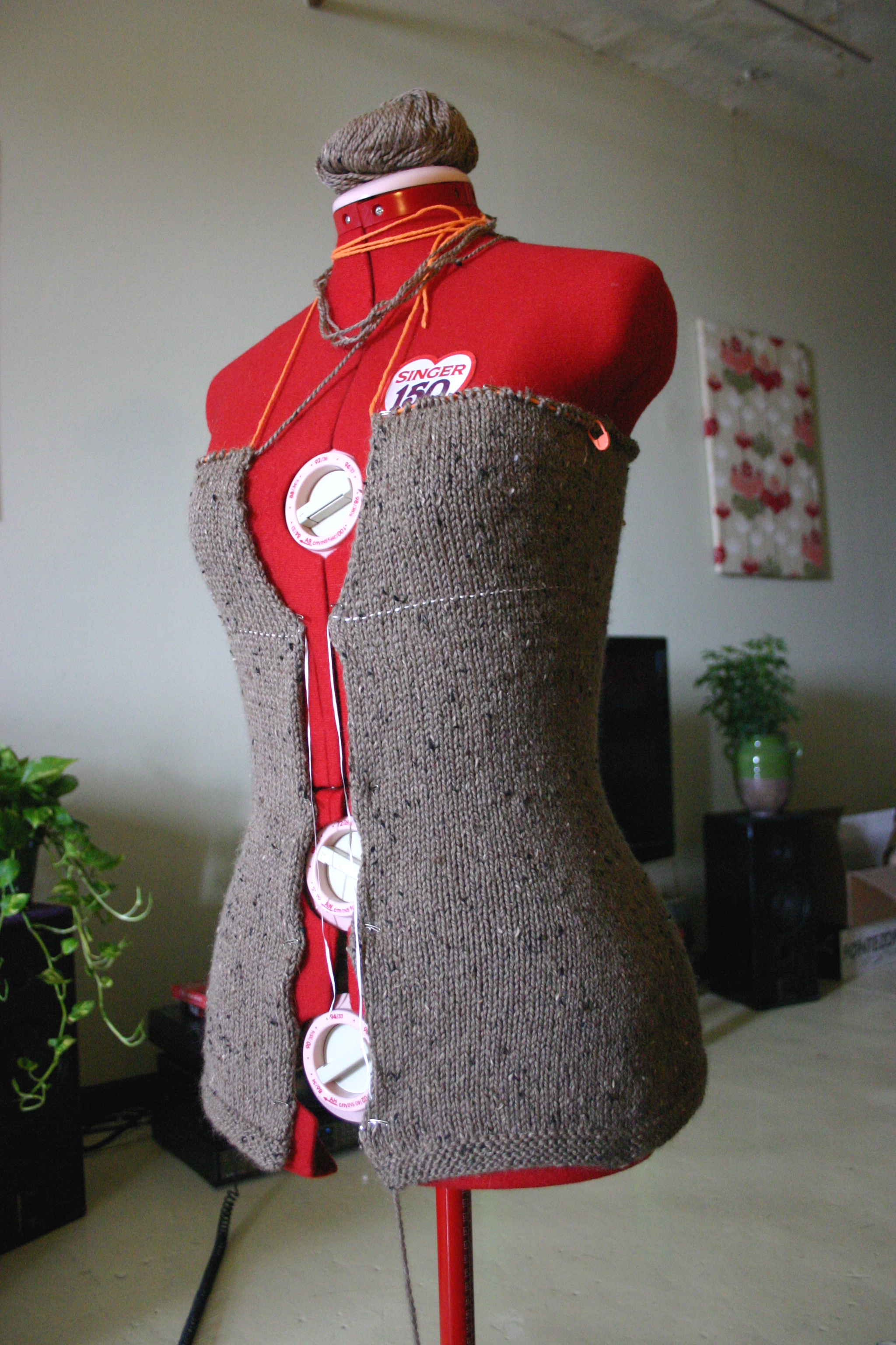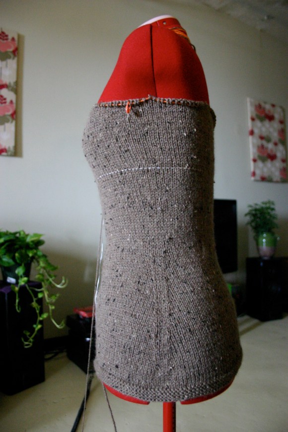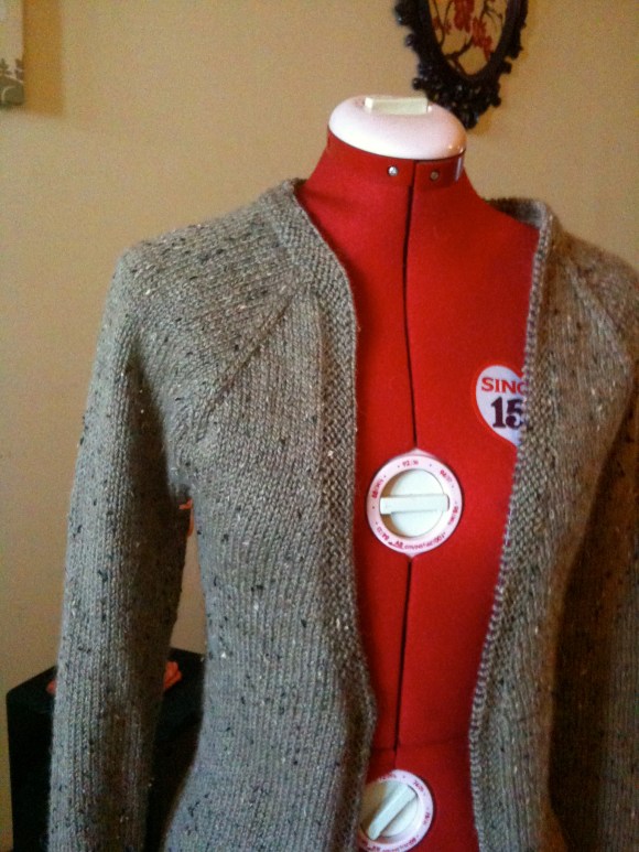 Fall is in the air in NYC today- crisp weather that just begs for a hand-knit cardigan. Unfortunately, my cardigan has been languishing around looking like this for over two weeks now: