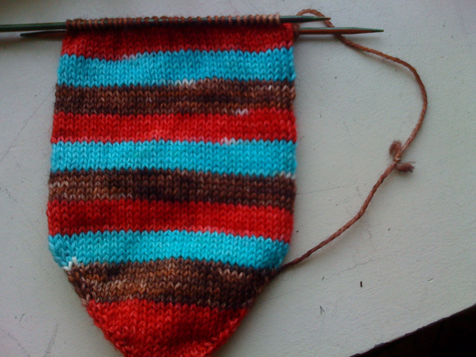 And speaking of being prepared for colder weather, Joey’s feet should be nice and warm as soon as I finish his second Stripy Sock:
