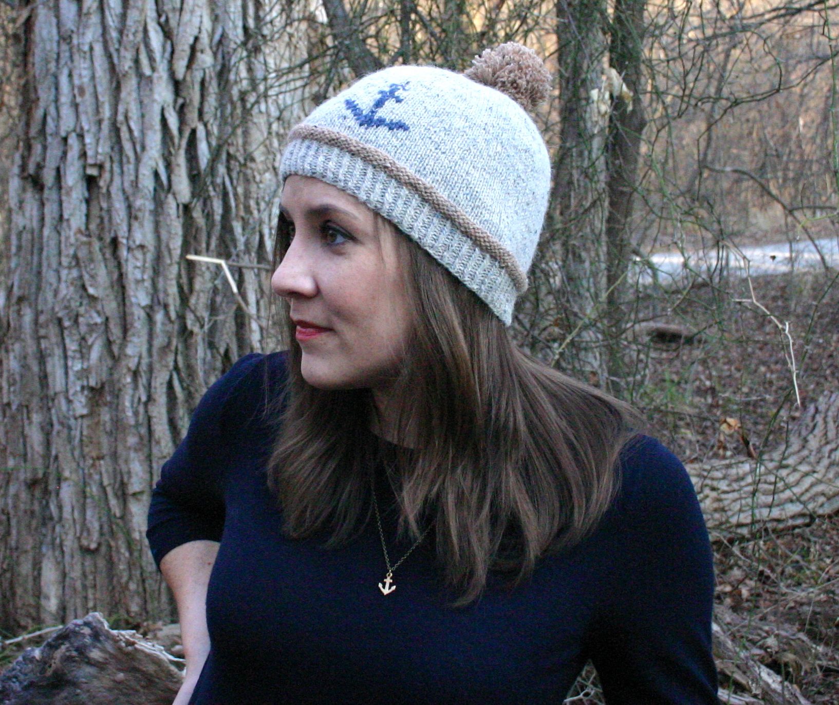 Borlänge, a fitted beanie knitted with three sea-inspired shades of Rowan Felted Tweed DK and embellished with a pom pom and an anchor is available as an instant download via Ravelry for $5.00. For personal use only. Copyright 2013, Kim McClellan