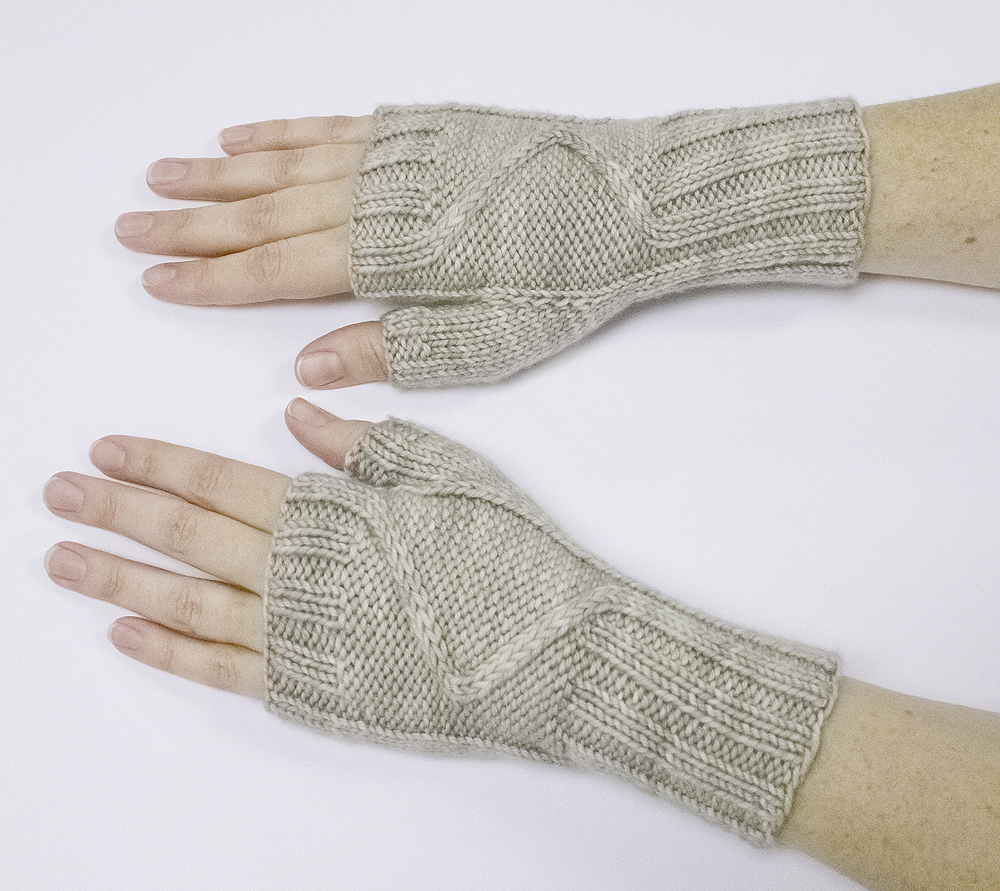 Each Wayfinder Mitt is cast on at the bottom edge and knit in the round. The top and bottom cuffs are worked in 2×2 rib, which stretches nicely to fit the wearer. The directional cables flow out of the ribbed cuff and are mirrored on the back of each hand. Thumb gussets are created by increases placed at the side of each mitt; after increasing, thumb stitches are placed on waste yarn and later picked up and worked in the round. Instructions are provided as both charted and written. Pattern is available as an instant download via Ravelry for $5.00. For personal use only. Copyright 2014, Kim McClellan